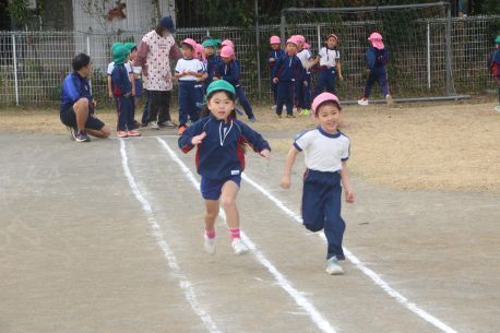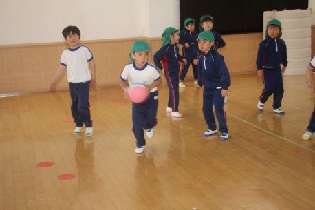年少さんは「玉入れ」年中さんは「かけっこ」の練習をしました。