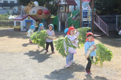 「スポーツテスト」の後、「大根掘り」に行ってきました。