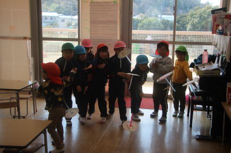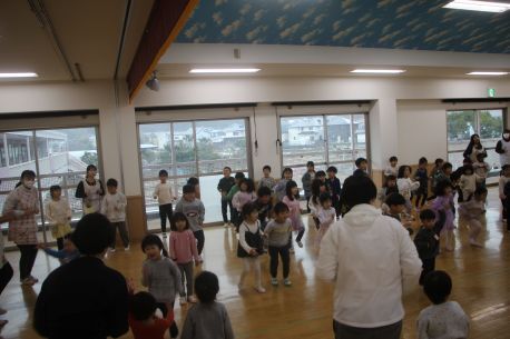 今日は「保育参観」がありました。年少「コマ回し」